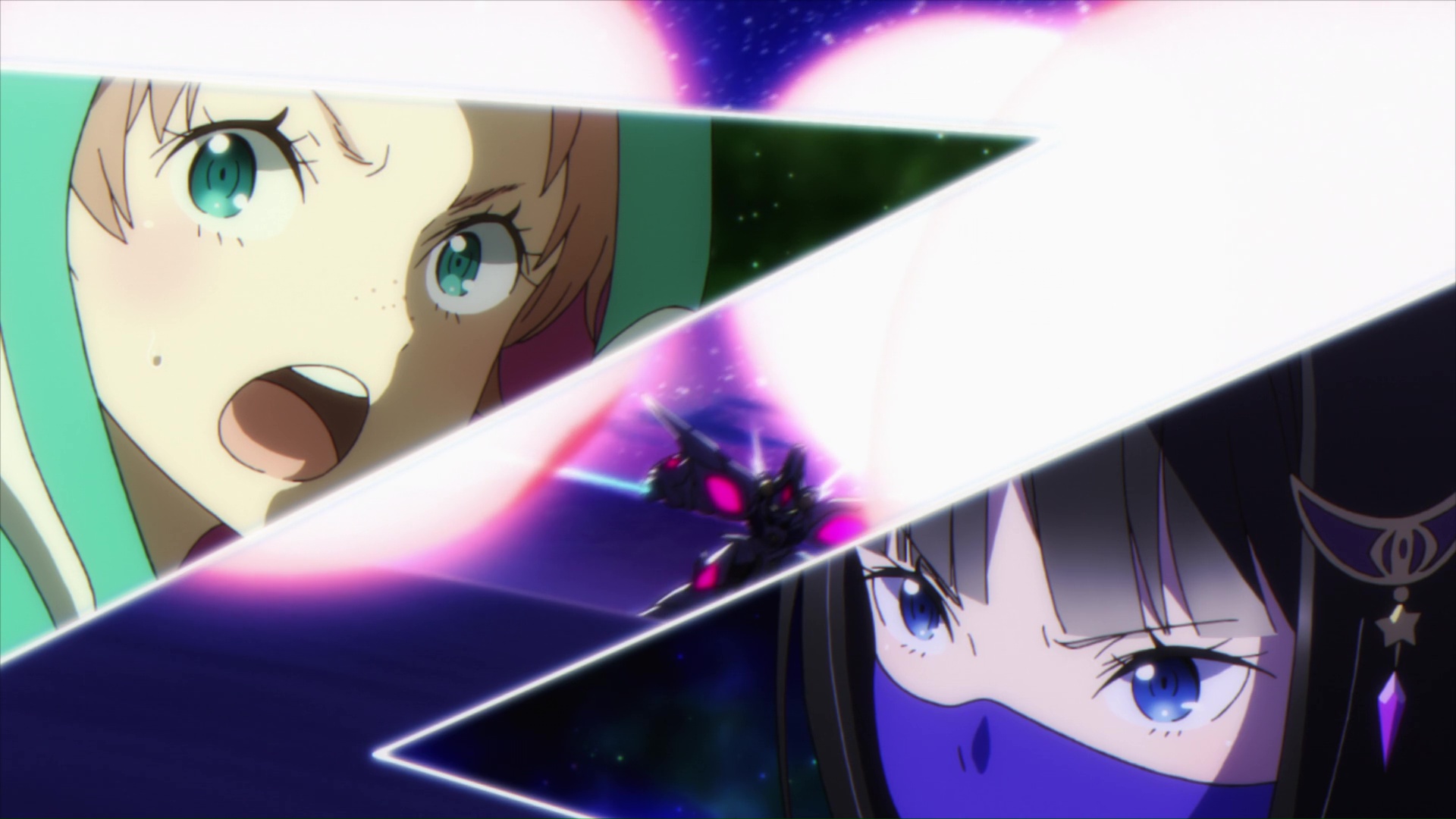 There are two things about this anime that stick out for me. One, it’s beautiful. The colors are bright, but also muted when they need to be. There’s a lot of glowing especially on the giant goddamned robots, which I love, and the cinematography is spectacular. Secondly, there is a lot of mystery to this show and none of the answers come off as telegraphed or foreshadowed. All of the main characters have a past that you can invest in, except for maybe Mangetsu, but you’re still intrigued by her story. Why’s she here? Why’s she so powerful? How did she learn to work her robot in a single episode?