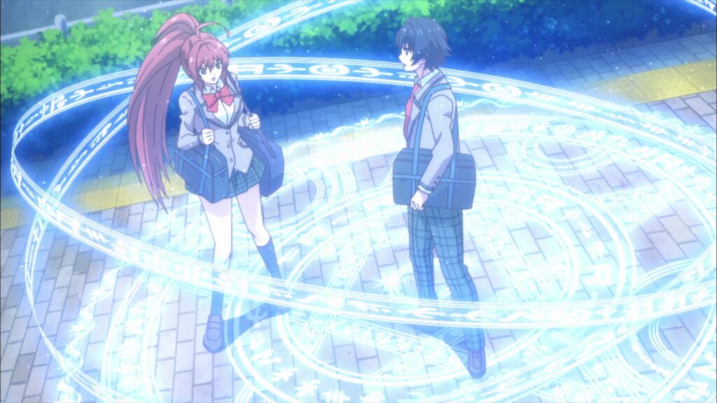 The show hasn’t been that interesting so far. Rin and Taichi are both pretty ‘blah’ characters, but there are a few things that make you look forward to the future and the unraveling of some mysteries. There’s a cute voice that Taichi keeps hearing that is clearly talking to him and seems to be at least partially responsible for the pair being transported to this new world. There are some weird ninjas who were sent to ambush the pair while doing a spy mission. Who sent them and why? Finally, the two teachers, Myura and Remia are way too accepting of Rin and Taichi’s insane power levels.