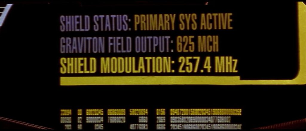 I don’t care if this is in engineering. I don’t believe for one damned second that something as important as the ship’s shield frequency would be left on a display terminal for just anyone to see. Power level, sure. Frequency? NO WAY. As is very eloquently demonstrated in just a few moments of movie time, the shield frequency is REALLY FUCKING IMPORTANT AND SENSITIVE INFORMATION.