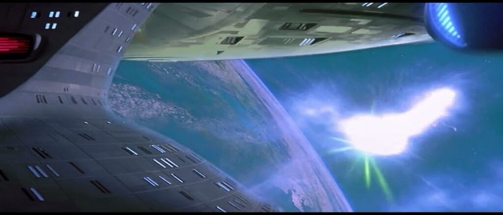 As an edit from the future, I have been told I was mistaken with this and that the warp core ejector was broken. If that was the case, what’s the goddamned point of having a warp core ejector if it’s going to break when you need it most?! God, I hate this movie. Moving on…