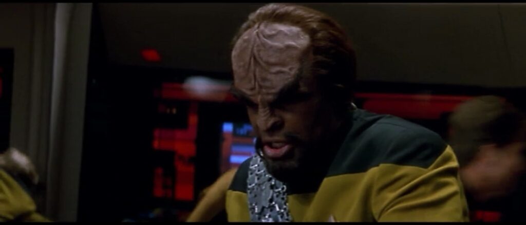 As an aside, I think the writers set out to make Worf as useless as possible in this entire movie. As another aside, there sure are a lot of ‘if only’ moments in this sequence of events.
